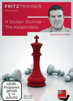 Kalašnikov je moje oblíbená zbraň v hlavní linii sicilské obrany. Je úzce příbuzná se Svěšnikovem, ale je třeba se naučit mnohem méně teorie. Toto stále populárnější zahájení se snadno osvojuje, protože černé figury lze obvykle rychle a hladce vyvinout. Když jsem hledal sicilskou variantu, kterou bych si mohl zahrát, tato varianta splňovala všechny požadavky. Mnoho nápadů je tematických a černý může v několika variantách dosáhnout útočných pozic. Všechny linie byly důkladně prověřeny a snad poskytnou divákovi jistotu při hře tohoto zahájení. Nxd4 e5. Od tohoto bodu je k dispozici kompletní repertoár černých. K dispozici je několik interaktivních otázek, které prověří divákovy znalosti materiálu.